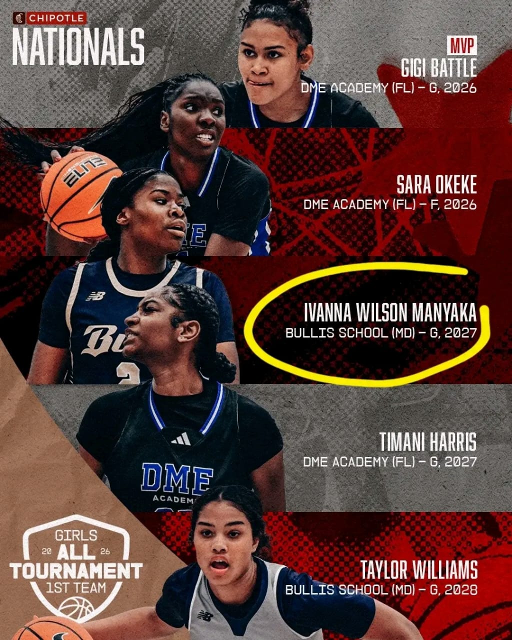 De son côté, Wilson Ivanna Manyacka, évoluant à Bullis School, a brillé par sa polyvalence et son intelligence de jeu. Capable de créer son tir, de lire les défenses et d’attaquer les espaces en drive, elle s’est distinguée par son ball handling, sa vision et sa capacité à impacter le jeu des deux côtés du terrain. Déjà championne du monde U16 avec Team USA, elle continue de franchir des paliers au plus haut niveau.